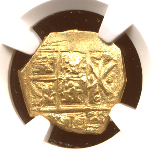 Mint records show that Cartagena began to strike two and one escudos in 1627 and continued to do so for 9 years (1627-1635). No gold coins attest a brief possible minatge in 1626. Under political pressure from officials at Bogota, Cartagena was never allowed to strike gold after 1635. The Bogota mint began regular production at the same time as Cartagena, and with a few brief hiatuses struck gold cobs until 1756.