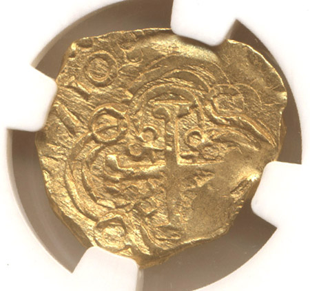 I was very surprised to see this classic Bogie arrive in an NGC holder. NGC usually will not grade substantially coraled Fleet pieces (fearing that the coral has been added to cover mischief) and suggests the coin go to NCS for "conservation" (cleaning) before grading. Fortunately, the owner declined "conservation" and NGC finally agreed, when the Ubilla Sale pedigree was pointed out to them, to call it a MS 60 1717 Fleet. In actuality it is lustrous choice mint state coin with beautiful color and surfaces on a big round planchet. If I were to assign a numerical grade to the coin, it would be at least MS 64.