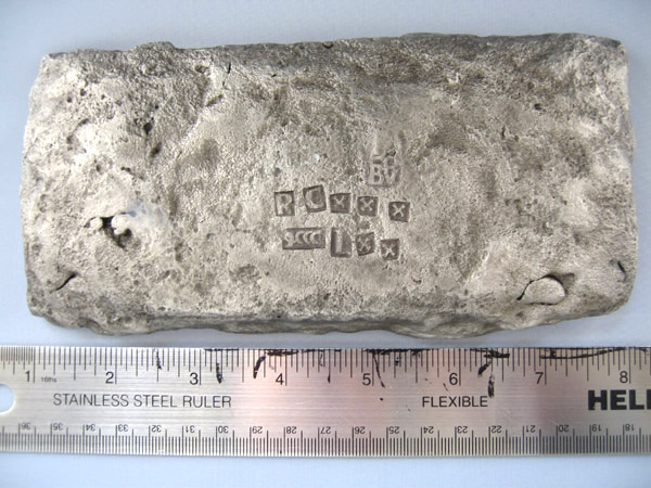 M36 is a typical Tarascan Bvo ingot, at 5.33 lbs just about the size of the average ingot recovered from the Los Mimbres Treasure. More than half of the Los Mimbres bars and discs carry Bernardino Vazquez's Bvo mark. If Bernardino's assay is correct, as it usually is, then M36 has about 23.2 ozs of pure silver and about 1.3 ozs of pure gold. This amount of silver and gold had purchasing power by the standards of 1525, but it was not negotiable or spendable so long as the gold and silver was sitting in an unrefined ingot like M36. Especially after the royal inspection of 1525 had cast serious doubt on the reliability of the Tarascan assays, Tarascan ingots would not have been accepted into commerce. They would not circulate as “necessity money”. They were not part of the monetary/economic system of New Spain because of their uncertain value. Someone who wanted to spend his share of the Tarascan treasure, someone who needed to pay taxes or deal with the Colonial government, someone who wanted to monetize his ingots for any number of reasons, needed to have his unrefined bars converted into properly refined ingots, or ideally, into coinage.