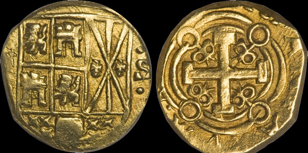 Mint records show that Cartagena began to strike two and one escudos in 1627 and continued to do so for 9 years (1627-1635). No gold coins attest a brief possible minatge in 1626. Under political pressure from officials at Bogota, Cartagena was never allowed to strike gold after 1635. The Bogota mint began regular production at the same time as Cartagena, and with a few brief hiatuses struck gold cobs until 1756.