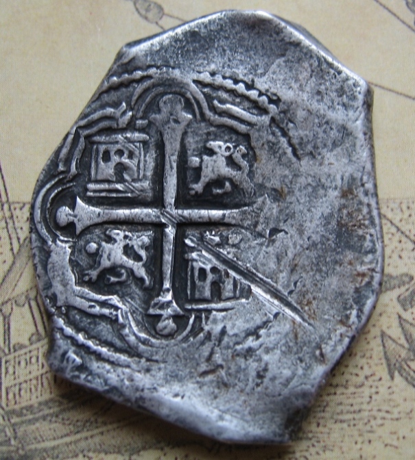 S1. From the Spanish galleon Nuestra Senora de La Concepcion (lost 1641), a rare N-R-P 16(28) eight reales struck at Santa Fe de Bogota